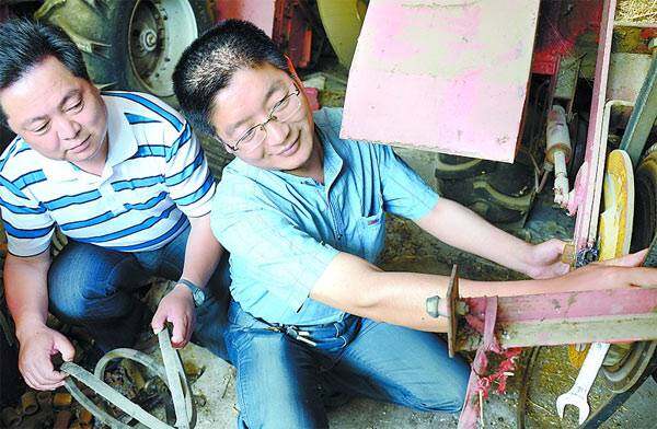 5月22日,市农机部门的技术员正在农高区一家农机专业合作社维修“三夏”农业机械。“三夏”农业生产在即,市农机局抽调骨干组成维修队,进村入户对联合收割机、大中型拖拉机等主力机具进行全面“体检”,技术员现场指导农机手更换易损零部件、排除常见故障等技术。 夏粮丰收在望。目前,农机部门正积极准备夏收工作,麦收期间,通过建立联系保修卡制度,确保在“三夏”中不停机、不误时,保证夏粮颗粒归仓。