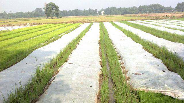 六安市金安区春泉农机专业合作社今年晚稻机插秧面积600亩,在区农机推广站和郊区农机站悉心指导下,首次使用无纺布育秧获得成功,目前大田秧苗长势良好。 据介绍,使用无纺布育秧具有以下优点:一是覆盖简单,只要把无纺布覆盖在育秧盘上,四周压实即可;二是无纺布具有一定的保温性,易出苗整齐;三是无纺布具有良好的透水性,补水方便;四是无纺布具有较好的透气性和透光性,能充分满足睡到育秧所必需的温度、湿度和光照,促进秧苗生长均衡,能轻松地培育出整齐、无病虫的健壮秧苗。