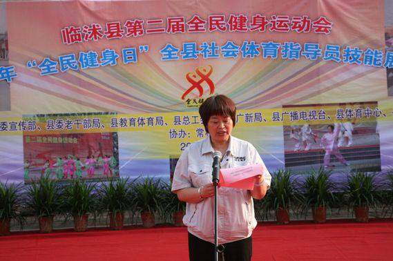 县委常委、宣传部部长武玉芹在讲话中指出,全民健身事业关系到人民群众的身体健康和生活幸福,大力开展群众性体育活动,不断提高人民群众的健康素质,是体育工作的根本目标,也是促进人的全面发展的重要手段。近年来,临沭县群众体育工作取得了长足的进步,积极培训发展各级社会体育指导员,增设体育场地,群众体育健康指数明显提高,健身服务体系初步形成。希望全县各部门,要以此次活动为抓手,积极履行全民健身职责,让人民积极投身到全民健身行列中,大力开展丰富多彩、贴近生活、形式多样的健身活动,让体育锻炼经常化,个人健身生活化,进一步加快推进全民健身服务体系建设。