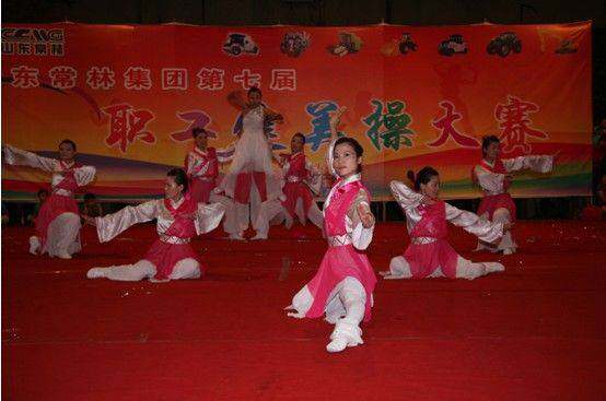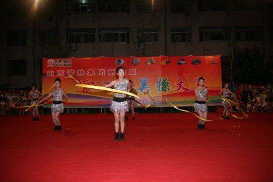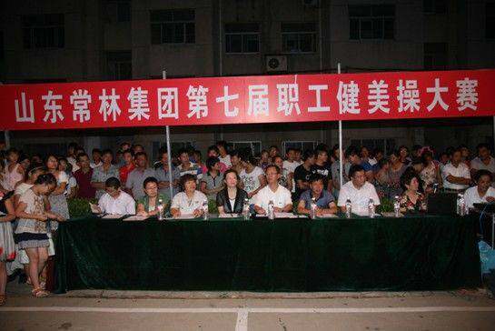 本网讯 莫立富报道 朱孔飞摄影 8月8日晚,山东常林集团第七届职工健美操大赛在南公寓灯光球场隆重举行。山东常林集团总裁钟默,集团党委副书记、监事会主席马西连,集团董事、工会主席邓春玲,集团办公室主任刘长伟、集团女职工委员会主任吴霞担任大赛评委并为获奖代表队颁奖,集团各公司、相关部室领导、各基层工会主席以及1000多职工共同观看了比赛。