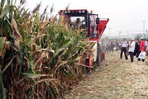 按规定,每台机械演示的内容是收获一块长几百米的3行至5行的成熟玉米。随着主持人一声令下,奇瑞重工谷王4YZ—5型玉米联合收获机率先启动,随着收获机的行进,观众开始查看收获效果。对观看的大部分农机手来说,剥皮的干净度和秸秆的粉碎度不是他们最关心的,他们最关心的是收获过程中掉粒现象是否严重。记者发现,所有收获机都出现掉粒现象,差别只在于掉粒多少。一位农机手仔细地翻着金亿玉米收获机收获后的秸秆,他告诉记者,随着农村青壮年劳动力向城市转移,近几年来,农民对玉米机械化收获的接受度越来越高,加之玉米收获机技术相对成熟了,他想从展会上挑选一款玉米收获机。