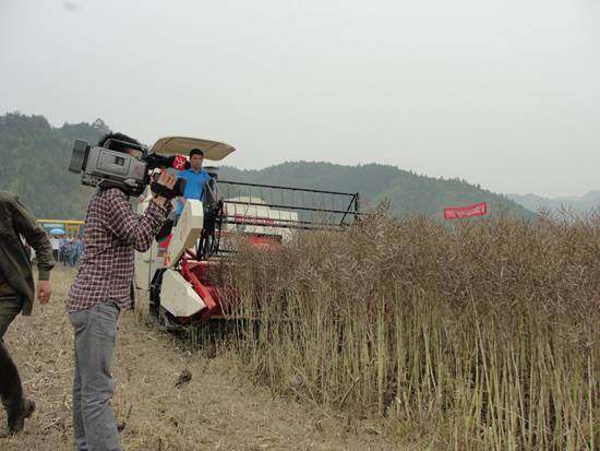 记者现场发现,雷沃谷神RG20油菜收割机的良好作业表现受到了现场参会媒体的高度关注,各路记者纷纷架起“长枪短炮”围着两台雷沃谷神RG20油菜收割机满场拍摄。“你再收一圈回来卸粮,我仔细拍一下这个收获效果!”现场某电视台的记者跟雷沃谷神RG20收割机司机师傅说。