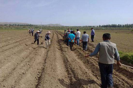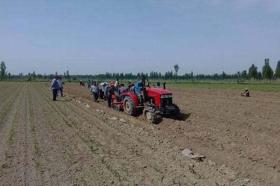 霍城县惠远镇是伊犁远近闻名的红薯产地,凡是离开伊犁经过霍城县惠远镇的游客,都设法携带数十公斤红薯,因为这里出土的红薯鲜艳光泽,甘甜爽口,是食用或馈赠亲朋好友的极佳赠品。“樱桃好吃树难栽”。红薯秧苗移栽是一项繁重的体力劳动,栽禾日当午,汗滴禾下土,是对栽红薯场景的真实写照。以往,这里农户栽植几亩地的红薯,都是联户互助义务出工。如果雇工突击,仅这一项开支也是农户家不小的数字。农民从电视上看到过国内的红薯栽培大区有这种秧苗移栽机,十分盼望自己在哪一天能使用上这种机器,从繁重的劳动中解放出来。