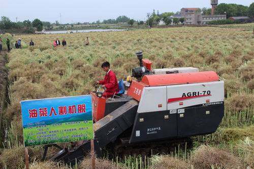 现场会主要演示了油菜机械割晒、油菜捡拾脱粒、油菜联合收割机分段收获、油菜联合收割机联合收割及水稻机插秧5个作业环节,展示了耕、播、插、收等四大类30余台先进粮油生产机械设备。
