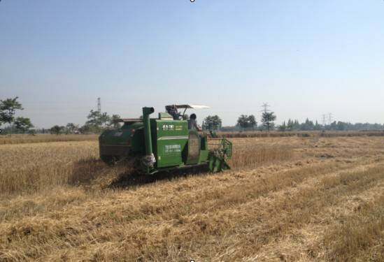 5月10日,谷王收割机正在四川绵阳地区进行机收作业