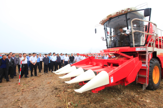 与会领导观看雷沃谷神玉米收割机进行作业演示