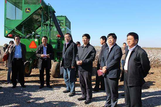 10月15日,农业部农机化司丁翔文巡视员到滨州视察指导棉花机械化收获作业。在滨州市无棣县佘家镇—全国农机农机融合万亩机采棉推进区,丁翔文巡视员视察了中航平水、约翰迪尔和山东天鹅棉机生产的多种型号的大中型采棉机采摘作业演示,观看了棉花中耕施肥机、棉花精播铺膜机、棉花拔柴机等棉花耕、播、管、收全过程生产机械装备。
